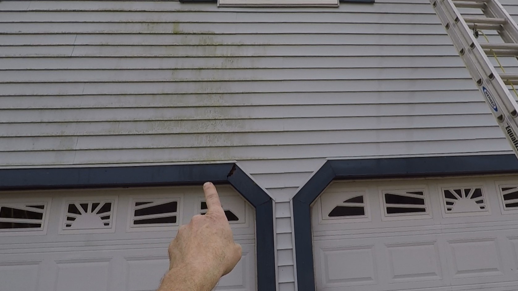 Clean the outside of the house with bleach and water to remove mildew algae and dirt.